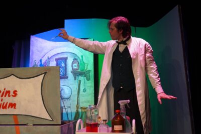 Die Umsetzung gehen beide natürlich ganz unterschiedlich an. Während der gewissenhafte Spielleiter sich fragt, ob wir zukünftig die Kontrolle an künstlich intelligente Roboter verlieren, denkt sein naiver Sidekick dagegen mehr an die Verfilmung des Stoffes, an die Serie und vor allem an Musicals. Und wer möchte überhaupt dieses hässliche Monster darstellen? Eine turbulente Komödie über Liebe, Monster und den drohenden Tod entsteht.